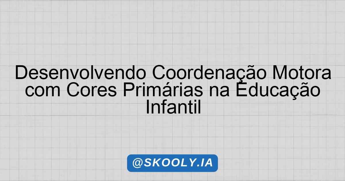 A coordenação motora é uma habilidade essencial que as crianças desenvolvem na infância, sendo vital para o seu crescimento e aprendizado. Este plano de aula visa proporcionar experiências vivenciais para crianças de 1 ano e 7 meses a 3 anos e 11 meses, utilizando as cores primárias como tema central. Através de atividades lúdicas que envolvem a coordenação motora fina e ampla, os alunos terão a oportunidade de estimular suas habilidades motoras enquanto exploram um universo colorido.