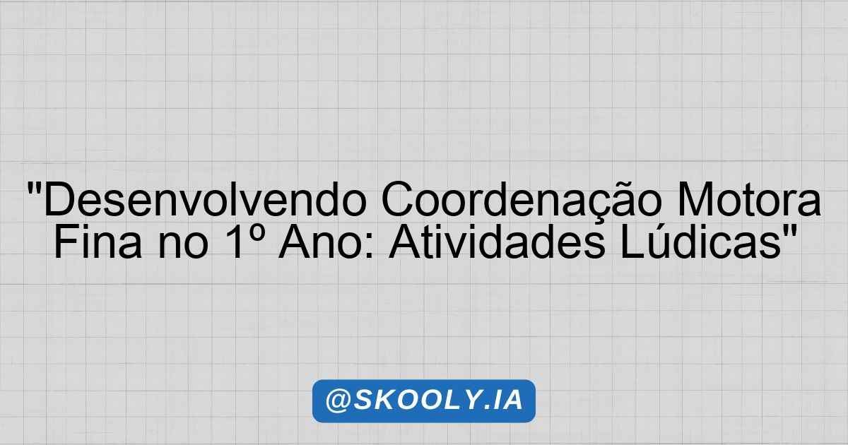 Este plano proporciona uma rica oportunidade para que os alunos do 1º ano do Ensino Fundamental desenvolvam sua coordenação motora fina através de atividades práticas e lúdicas, assim como incentiva a autonomia e a interação social, essenciais para o seu desenvolvimento.