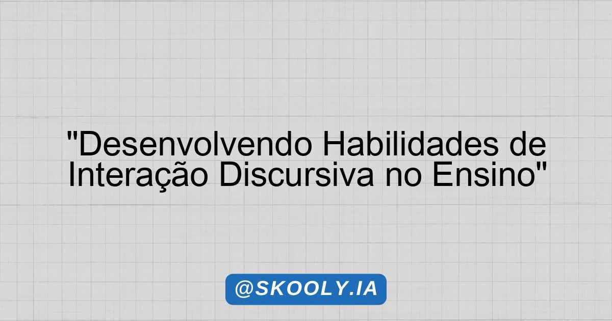 “Desenvolvendo Habilidades de Interação Discursiva no Ensino”