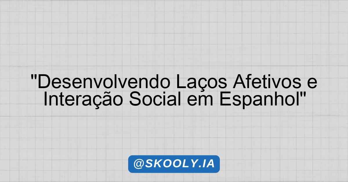 Tema: Construção dos laços afetivos e convívio social em espanhol