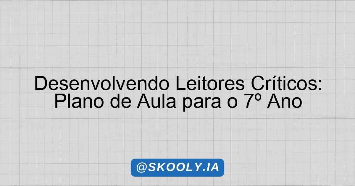 Desenvolvendo Leitores Críticos: Plano de Aula para o 7º Ano