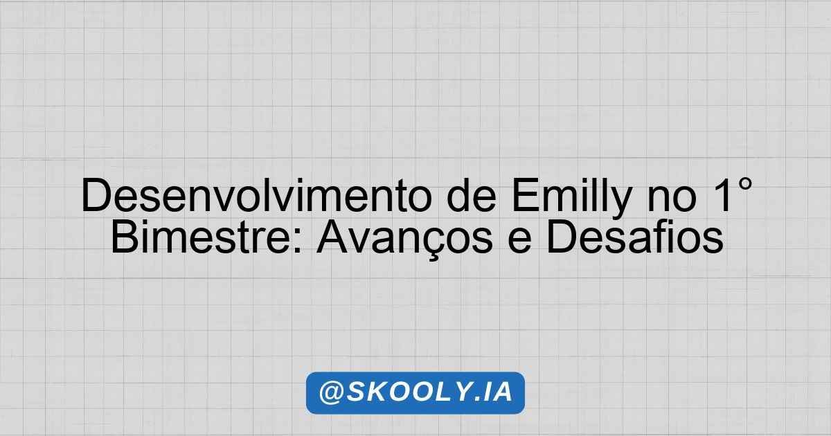 O presente parecer descritivo tem como objetivo refletir sobre o desenvolvimento de Emilly dos Santos Silva durante o 1º bimestre do ano letivo, considerando suas habilidades, dificuldades e aspectos socioemocionais, com base na observação contínua e atenta ao seu processo de aprendizagem.