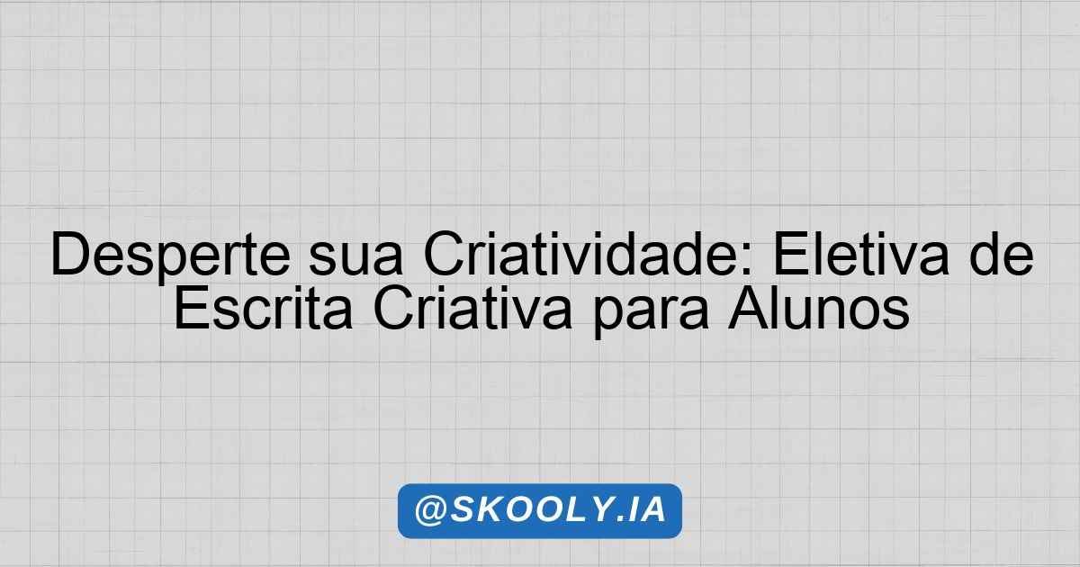 Desperte sua Criatividade: Eletiva de Escrita Criativa para Alunos