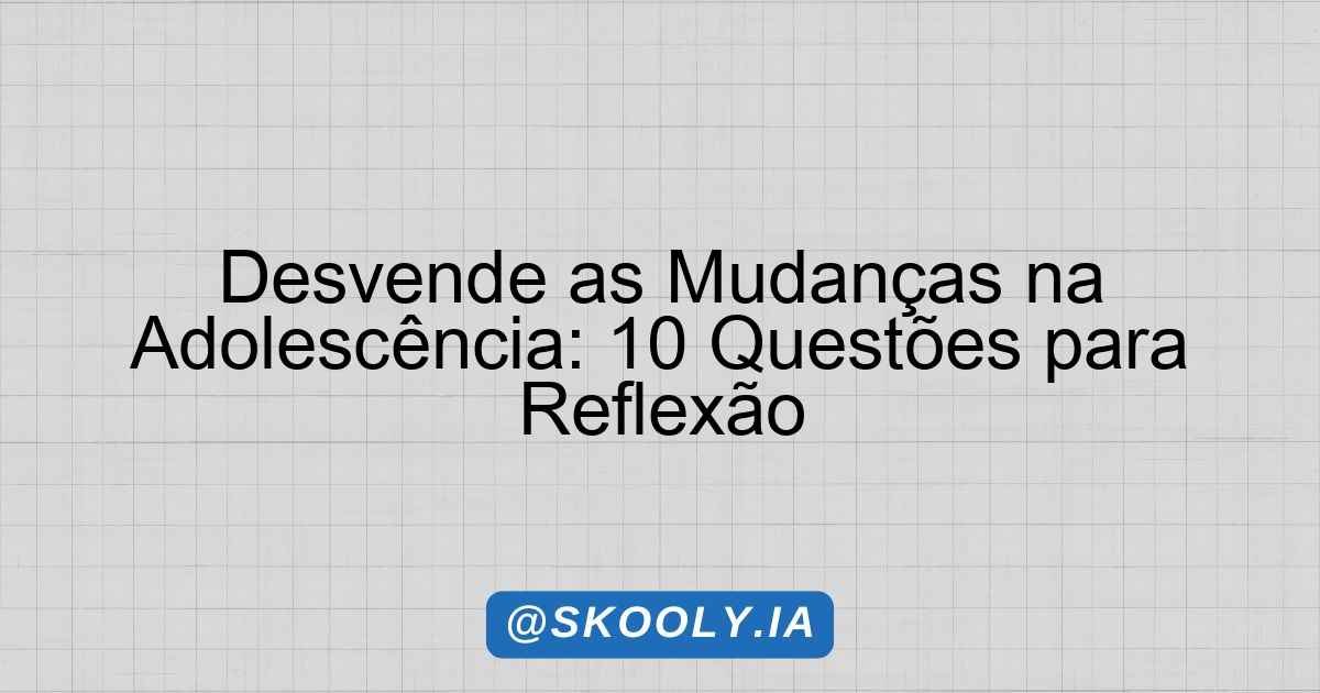 Desvende as Mudanças na Adolescência: 10 Questões para Reflexão