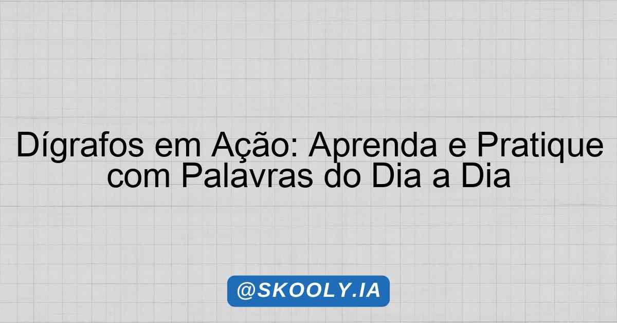 Nesta atividade, os alunos irão explorar o conceito de dígrafos, fundamentais para a escrita correta de diversas palavras que utilizamos no dia a dia. Compreender e aplicar o uso dos dígrafos é essencial para melhorar a comunicação escrita e facilitar a leitura, habilidades indispensáveis no ambiente de trabalho, nas interações sociais e na vida cotidiana.