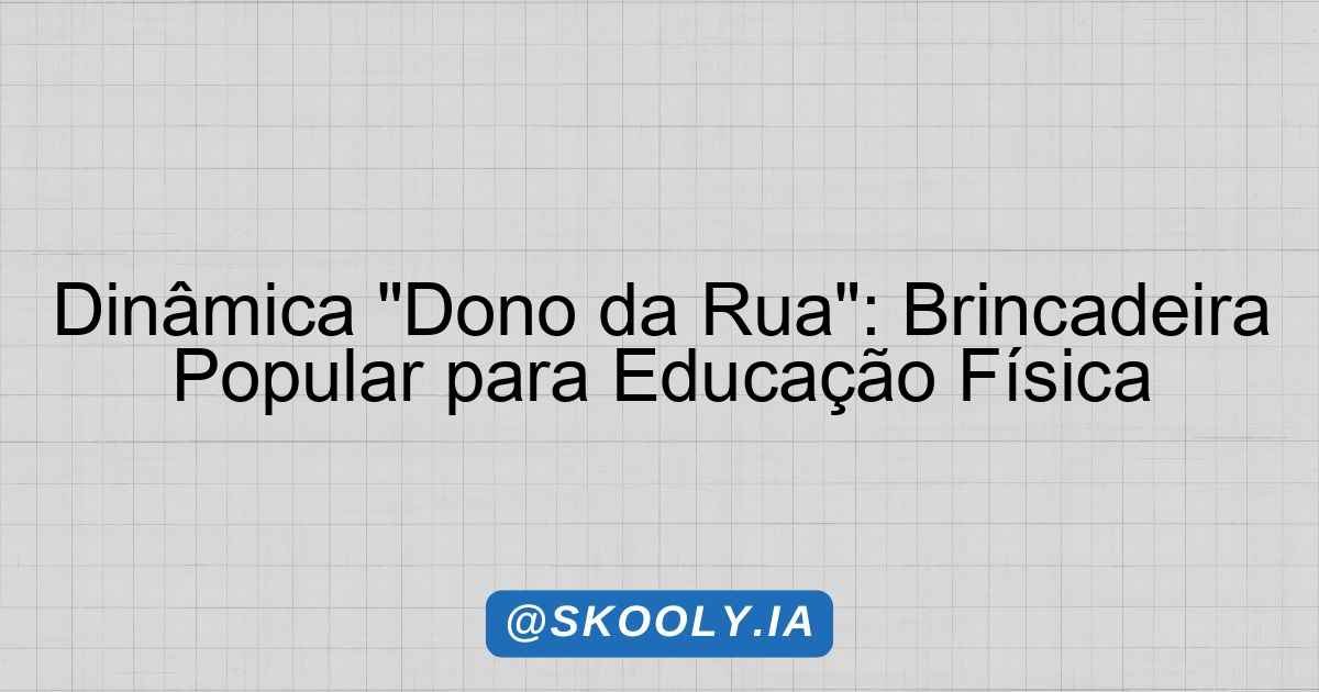 A proposta deste plano de aula é trabalhar a dinâmica “Dono da Rua”, proporcionando aos alunos uma vivência prática que envolve não apenas a atividade física, mas também a socialização e o respeito às regras coletivas. A brincadeira estimula a interação, a coordenação motora e a criatividade, além de contribuir para a construção de uma cultura de respeito e inclusão. Ao longo da aula, os alunos experimentarão e fruirão os valores das brincadeiras populares do Brasil, desenvolvendo habilidades motoras e sociais.