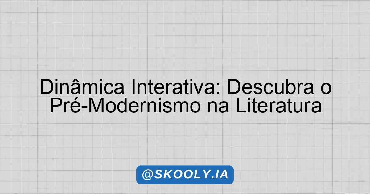 A dinâmica “Pré – Modernismo” proporciona uma experiência interativa onde os alunos, em pequenos grupos, exploram as características, temáticas e autores do Pré-modernismo na literatura brasileira. A atividade promove a colaboração e a criatividade, desafiando os participantes a pensarem criticamente sobre o tema.