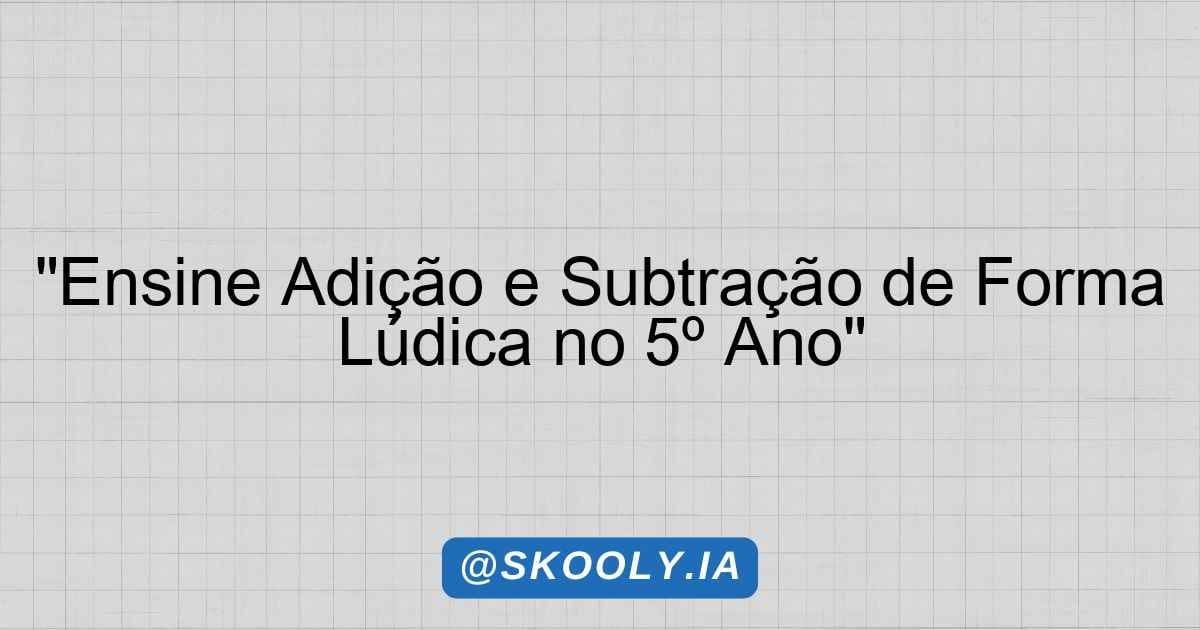 “Ensine Adição e Subtração de Forma Lúdica no 5º Ano”