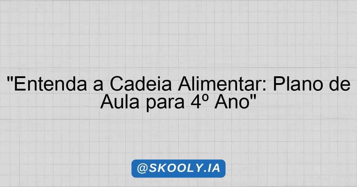 O plano de aula a seguir visa proporcionar aos alunos do 4º ano do Ensino Fundamental uma compreensão clara sobre a cadeia alimentar, seu funcionamento e a importância da mesma para o equilíbrio dos ecossistemas. Através de uma aula explicativa, com a utilização de recursos audiovisuais e atividades práticas, os estudantes poderão explorar a interdependência entre os seres vivos e a energia proveniente do Sol.