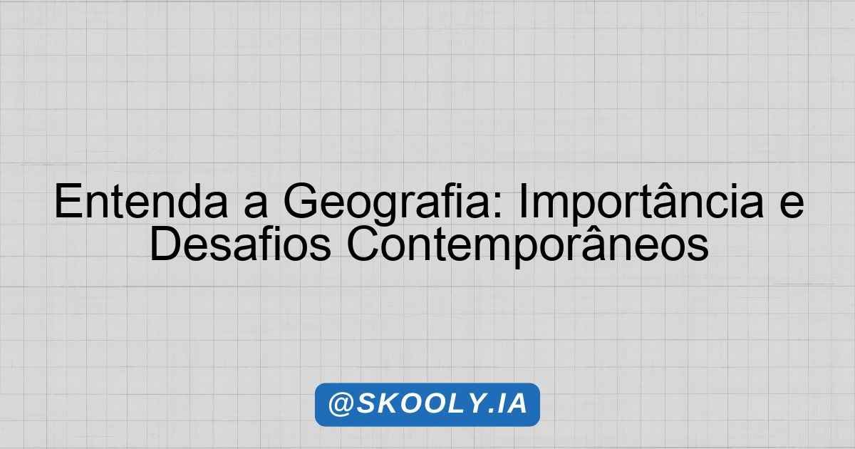 Portanto, entender a Geografia é fundamental para a formação de cidadãos críticos e conscientes de seu papel na sociedade. Essa disciplina não apenas explica o espaço que habitamos, mas também nos ensina a agir de maneira responsável e sustentável em nosso cotidiano.