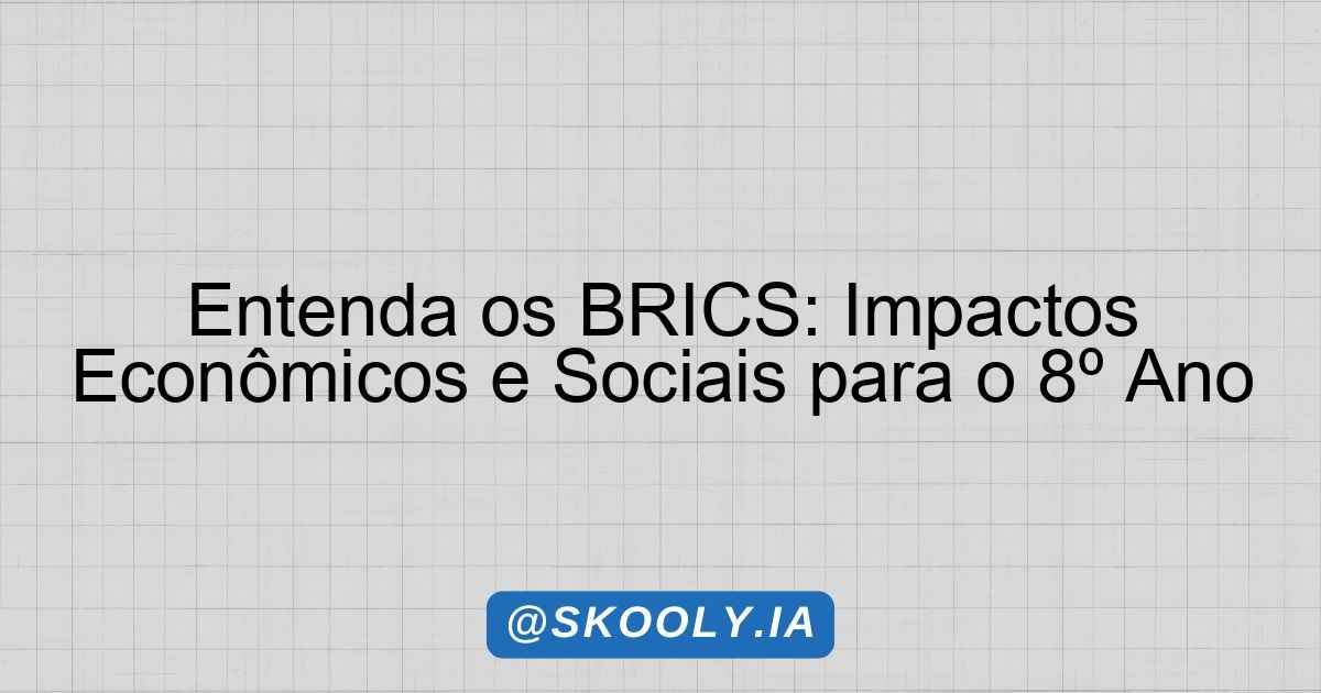 Neste plano de aula, abordaremos o tema BRICS, um agrupamento econômico que inclui Brasil, Rússia, Índia, China e África do Sul. Este assunto é de extrema relevância no contexto da Geografia mundial contemporânea, pois propõe uma análise crítica sobre as dinâmicas econômicas, sociais e políticas desses países. O objetivo é proporcionar aos alunos do EJA, especificamente do 8º ano do Ensino Fundamental, a compreensão da importância desse bloco econômico e sua influência no cenário global, assim como os desafios que esses países enfrentam.