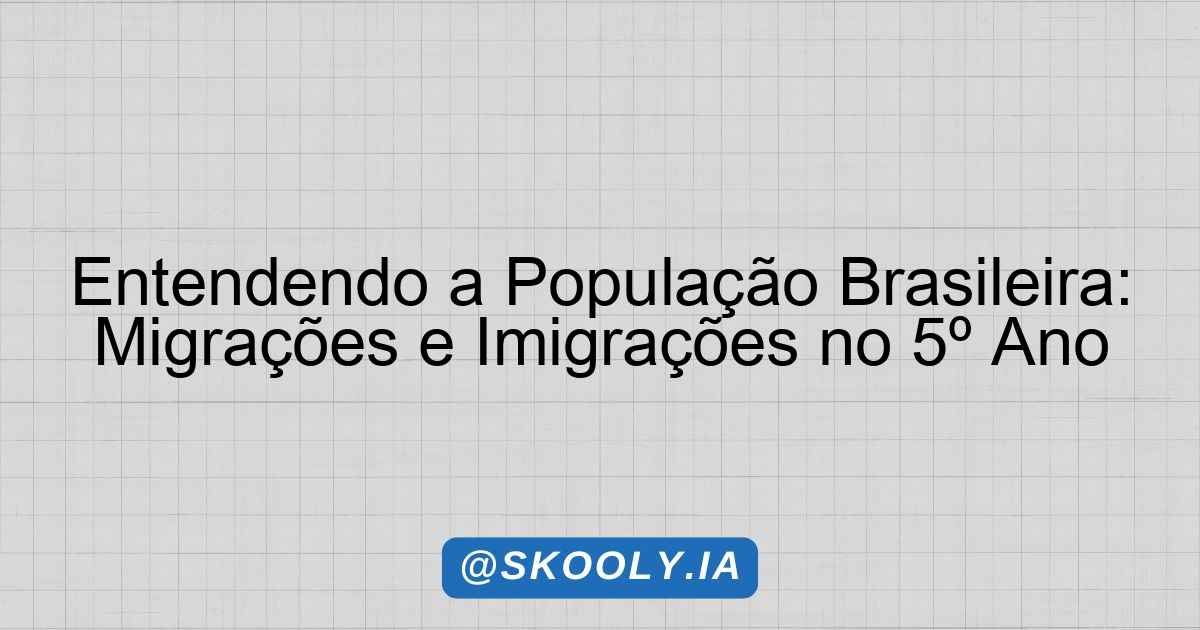 A proposta deste plano de aula é proporcionar aos alunos do 5º ano do Ensino Fundamental um entendimento aprofundado sobre a população brasileira, suas dinâmicas de migração e imigração, bem como a presença e a influência dos imigrantes no território nacional. Essa temática irá além dos conceitos básicos, promovendo uma análise crítica e reflexiva sobre como esses movimentos populacionais afetam a sociedade, a economia e a cultura do Brasil.