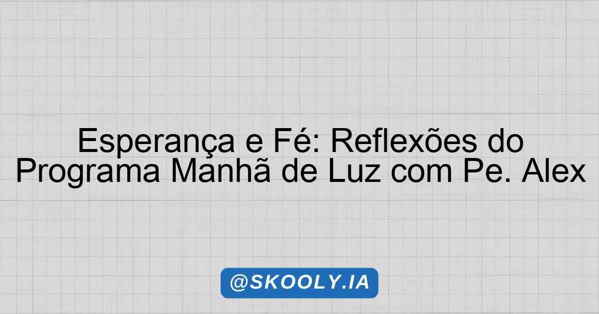 Esperança e Fé: Reflexões do Programa Manhã de Luz com Pe. Alex
