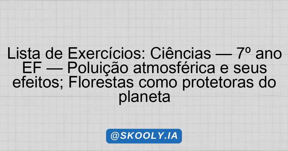 Responda as questões abaixo sobre poluição atmosférica e florestas.
