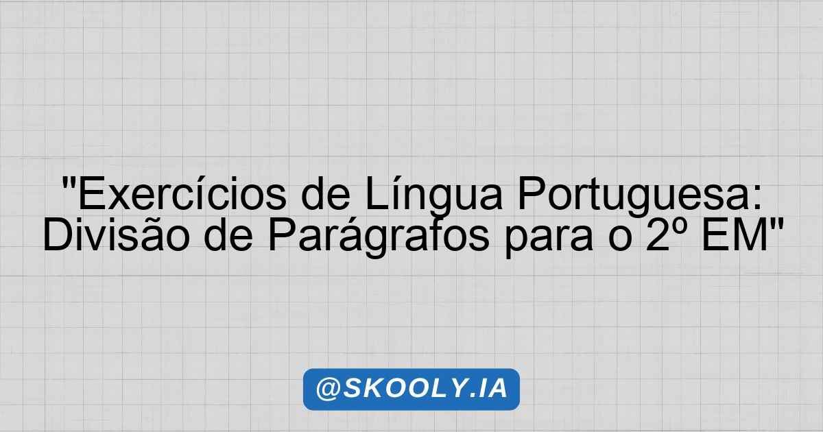 Instruções Gerais: Nesta lista de exercícios, você irá trabalhar a importância da divisão de um texto em parágrafos. Leia atentamente as questões e responda da melhor forma possível. Boa sorte!