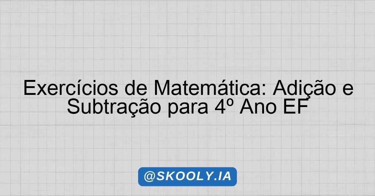Exercícios de Matemática: Adição e Subtração para 4º Ano EF