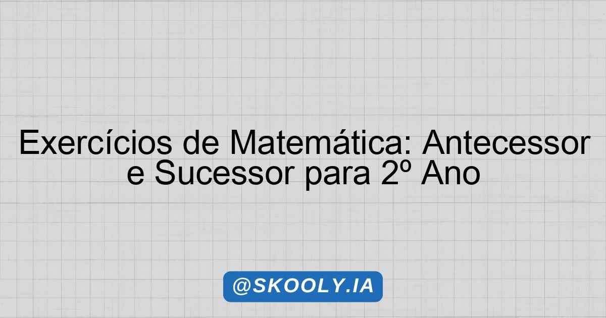 Exercícios de Matemática: Antecessor e Sucessor para 2º Ano