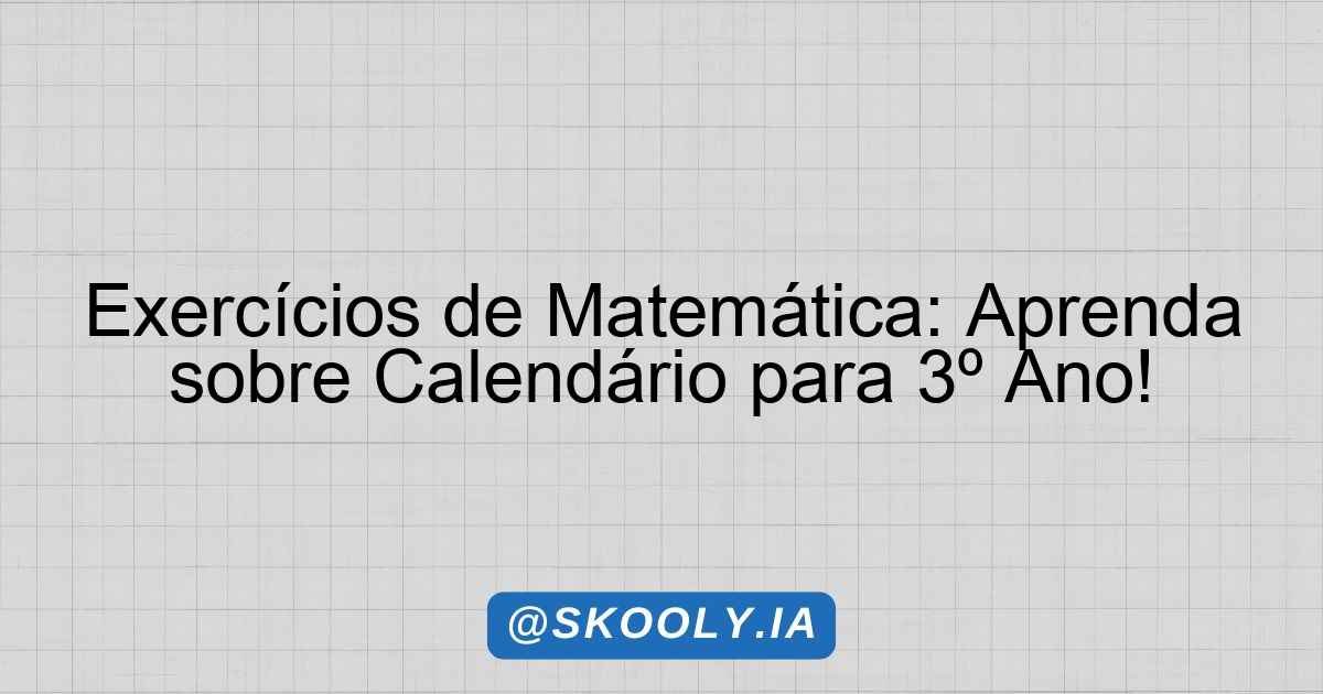 Exercícios de Matemática: Aprenda sobre Calendário para 3º Ano!