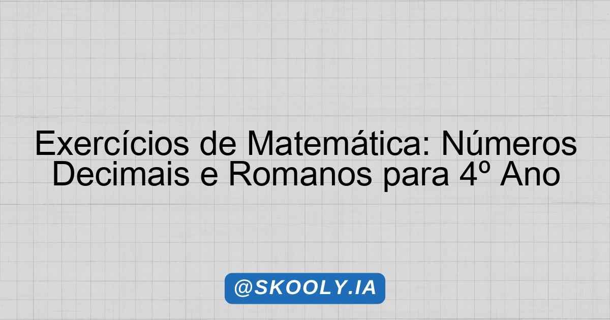 Exercícios de Matemática: Números Decimais e Romanos para 4º Ano
