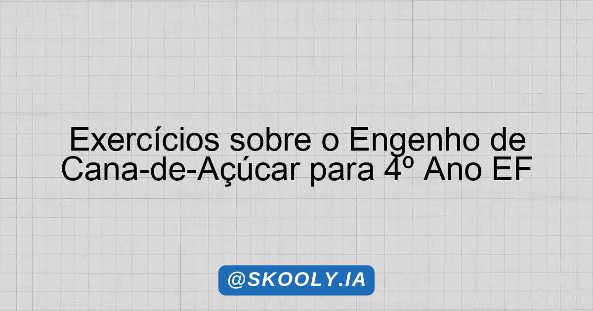 Leia atentamente as questões e responda com cuidado, utilizando seus conhecimentos sobre o engenho de cana-de-açúcar.