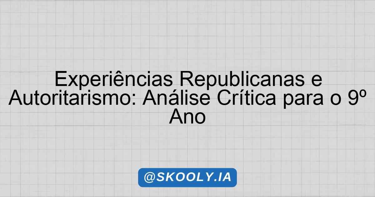 Este plano de aula propõe uma abordagem profunda e detalhada sobre o tema das experiências republicanas e práticas autoritárias no contexto atual, permitindo que os alunos do 9º ano do Ensino Fundamental II desenvolvam uma compreensão crítica sobre as tensões e disputas que marcam o mundo contemporâneo. Ao longo das atividades, serão explorados aspectos históricos, sociais e políticos, levando em consideração a BNCC e as diversas habilidades que os estudantes devem desenvolver.