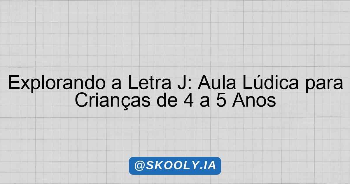 Este plano de aula é dedicado à exploração da consoante J, voltado para crianças pequenas, com idades compreendidas entre 4 anos e 5 anos e 11 meses. O intuito é trabalhar o reconhecimento e a articulação dessa letra de forma lúdica e criativa, proporcionando um ambiente rico em oportunidades de escuta, fala, pensamento e imaginação. A aula será realizada por meio de atividades práticas e interativas, que estimulem as crianças a se expressarem e se envolverem com a sonoridade e os vocábulos que começam com a letra J.