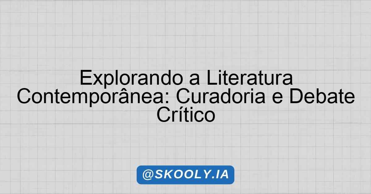 Apresentar o tema “Curadoria de títulos da literatura contemporânea” explicando seu significado e importância no contexto cultural atual. Discutir brevemente como a literatura contemporânea reflete e interage com o mundo moderno, enfatizando a autonomia crítica que os estudantes podem desenvolver a partir disso.