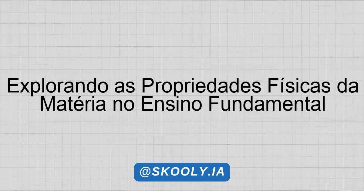 O objetivo geral é proporcionar aos alunos um entendimento amplo sobre as propriedades físicas da matéria, permitindo que eles consigam manipular, classificar e explicar as diferentes características dos materiais que compõem o mundo que os cerca.
