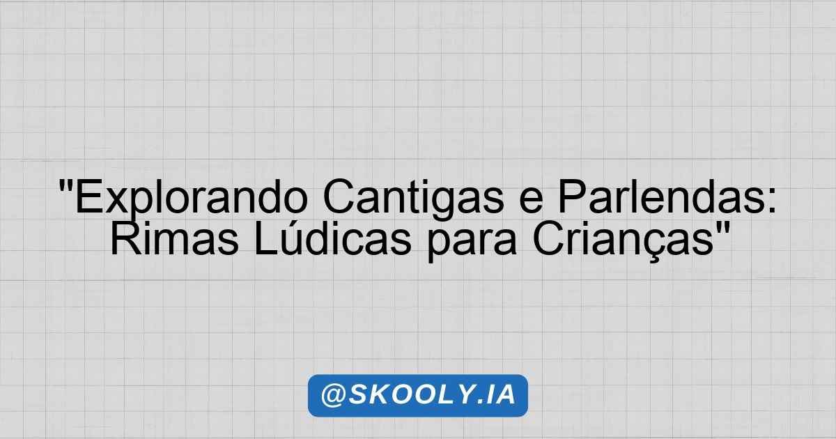 “Explorando Cantigas e Parlendas: Rimas Lúdicas para Crianças”