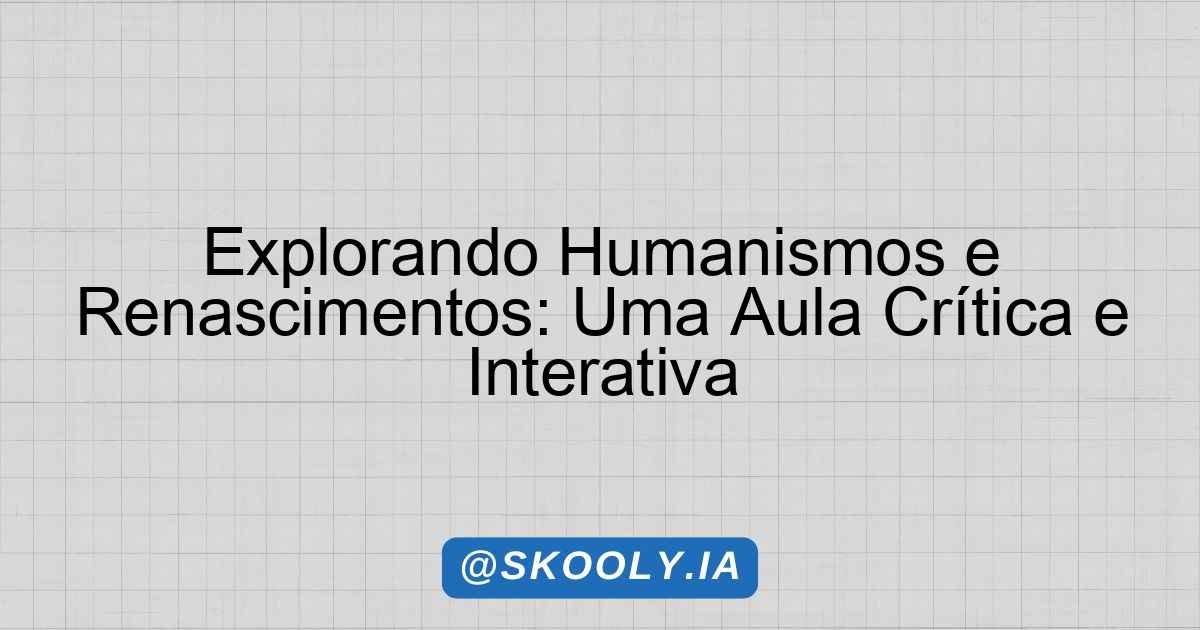 O plano de aula a ser apresentado tem como objetivo explorar de forma aprofundada as características dos Humanismos e dos Renascimentos, bem como analisar seus significados ao longo da História. Com uma proposta que envolve a interação, a pesquisa e o debate, pretende-se proporcionar aos alunos uma visão crítica sobre como esses movimentos influenciaram o pensamento e a cultura ocidental. Os estudantes terão a oportunidade de se engajar em atividades práticas, leitura de textos e discussões em grupo, enriquecendo assim sua compreensão e visão de mundo.