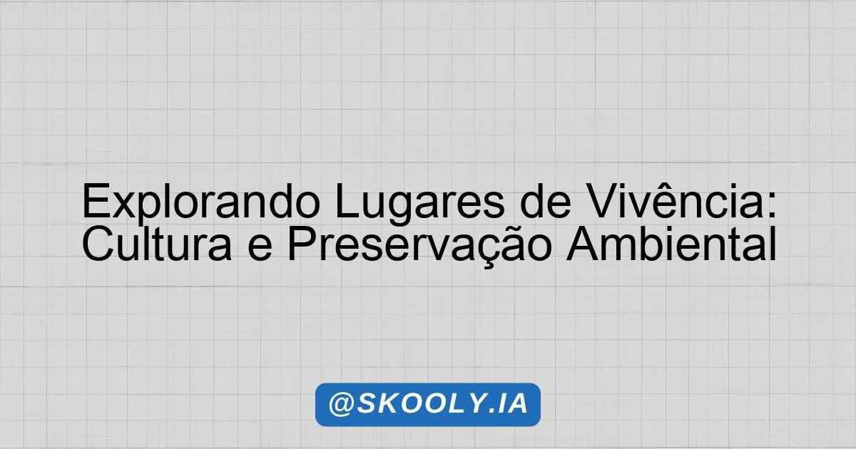 Explorando Lugares de Vivência: Cultura e Preservação Ambiental