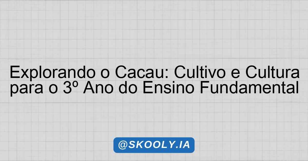 Explorando o Cacau: Cultivo e Cultura para o 3º Ano do Ensino Fundamental