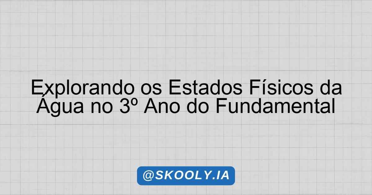 A proposta deste plano de aula é proporcionar uma experiência rica e significativa aos alunos do 3º ano do Ensino Fundamental, abordando o tema Estados Físicos da Água. A água, em suas diferentes formas, é essencial para a vida e é fundamental que as crianças compreendam suas características e transformações. Durante três aulas de 45 minutos, os alunos terão a oportunidade de explorar conceitos importantes relacionados à água, por meio de atividades práticas e lúdicas que promovam a investigação e a compreensão do tema.