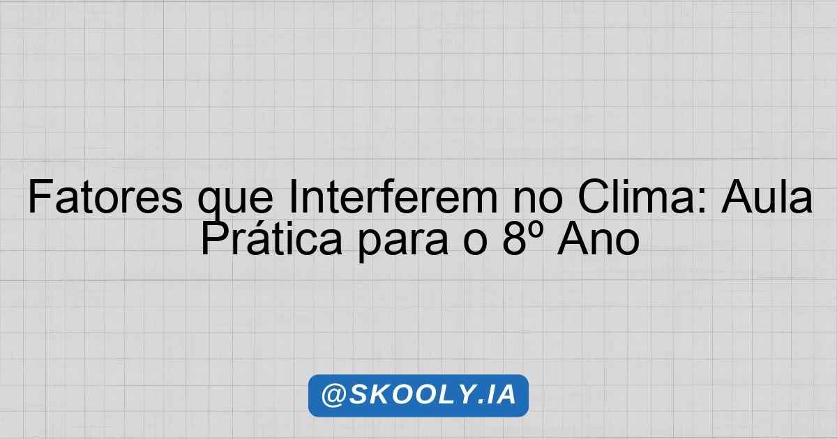 Este plano de aula foca no tema fatores que interferem no clima, permitindo aos alunos do 8º ano do Ensino Fundamental 2 compreenderem como as variáveis ambientais podem impactar o clima de diferentes regiões. A aula, com duração de 50 minutos, busca envolver os estudantes em atividades práticas e discussões que incentivem o aprendizado ativo e a reflexão sobre a importância da preservação ambiental.