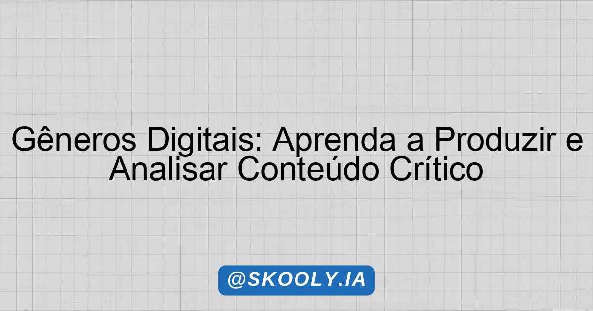 Gêneros Digitais: Aprenda a Produzir e Analisar Conteúdo Crítico