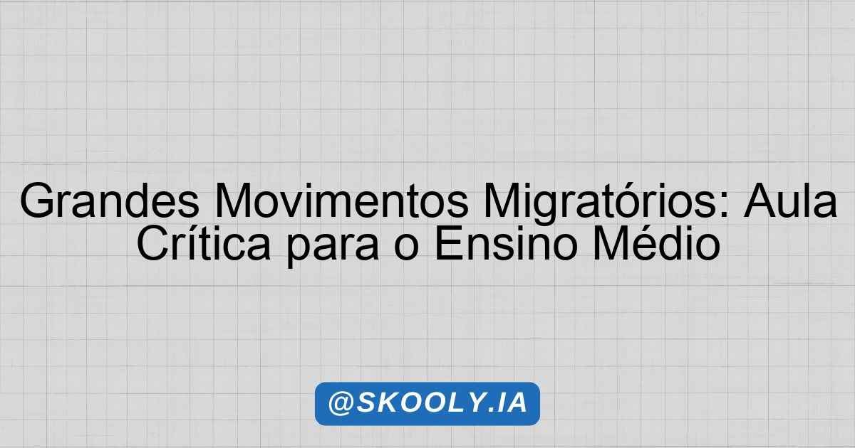 Grandes Movimentos Migratórios: Aula Crítica para o Ensino Médio