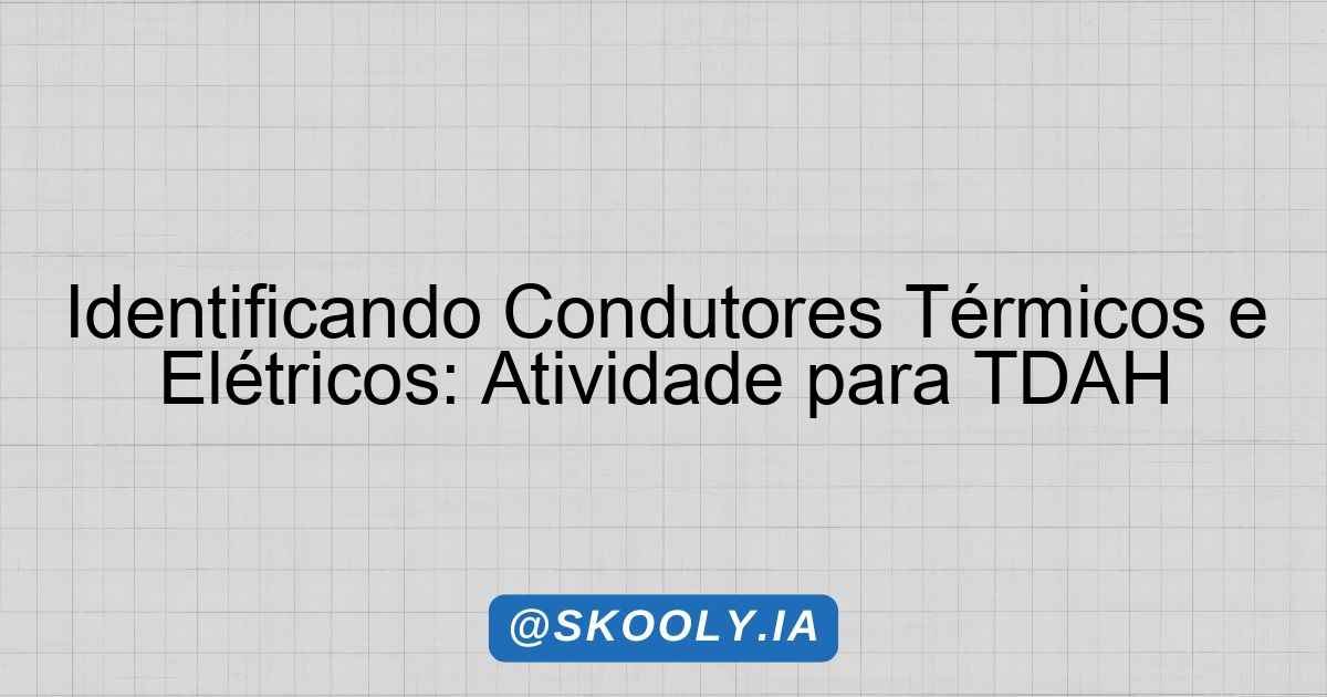 🌈 Tarefa Adaptada: IDENTIFIÇÃO DE BONS E MAUS CONDUTORES TÉRMICOS E ELÉTRICOS