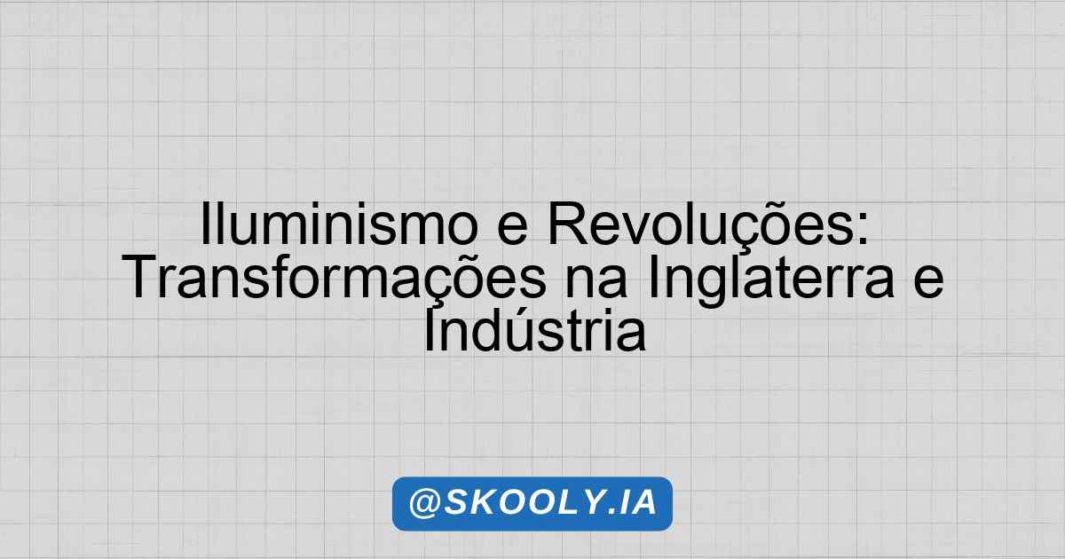 A proposta deste plano de aula é explorar como o Iluminismo esteve intimamente relacionado às revoluções que moldaram a Inglaterra e a Revolução Industrial. A importância deste tema reside no entendimento dos conceitos que fundamentaram a transição de uma sociedade agrária para uma sociedade industrializada, além da maneira como isso influenciou as estruturas sociais e políticas da época. Será estudado, portanto, o pensamento iluminista e seu impacto nas revoluções que seguiram, bem como as transformações econômicas e sociais provocadas pela Revolução Industrial.