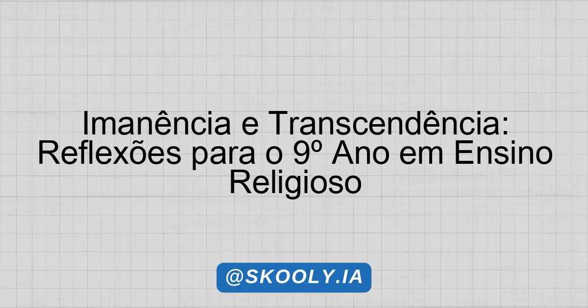 Imanência e Transcendência: Reflexões para o 9º Ano em Ensino Religioso