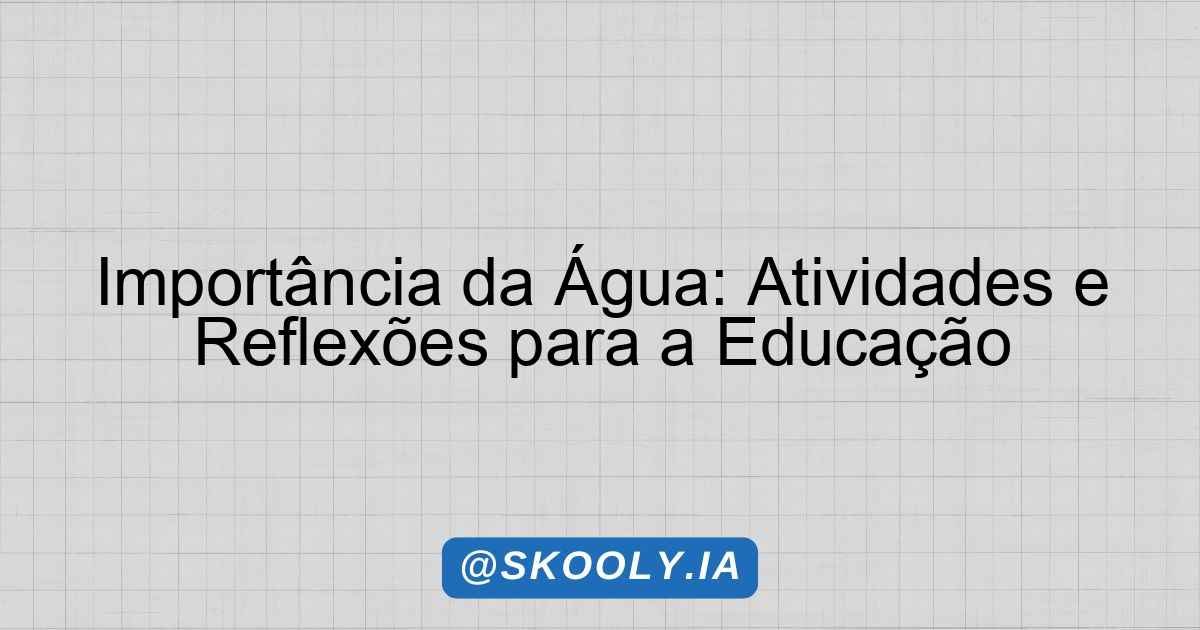 – Introdução/Acolhimento (10min): Iniciar com uma roda de conversa sobre o que os alunos sabem sobre a água. Perguntar: “Por que a água é importante?”.
