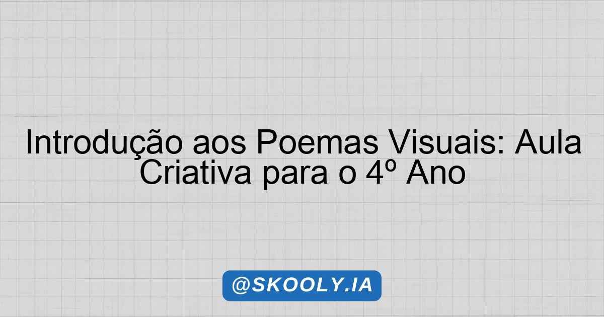 Este plano de aula tem como objetivo introduzir os alunos do 4º ano do Ensino Fundamental ao universo dos poemas visuais. O poema visual é um tipo de poesia que utiliza a forma e a disposição gráfica das palavras para compor um sentido estético e expressivo. Essa forma de arte literária possibilita que as crianças explorem a relação entre texto e imagem, além de desenvolverem criatividade e habilidades artísticas. Nesse contexto, a aula busca estimular a apreciação estética e a produção de textos que não apenas contem uma história, mas que também se valham da disposição visual para intensificar a mensagem.