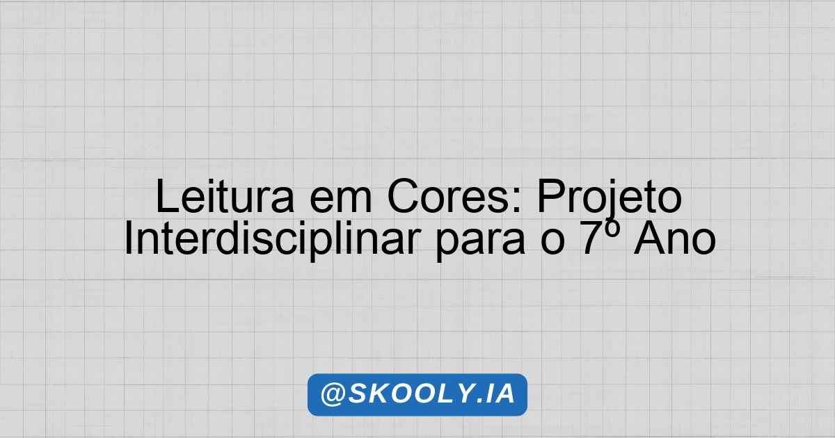 O projeto “Leitura em Cores” visa estimular a leitura entre os alunos do 7º ano, promovendo a fluência e a apreciação literária. Através da combinação de leitura e artes, os alunos poderão expressar suas interpretações e criatividade, tornando a leitura uma experiência mais significativa e envolvente.