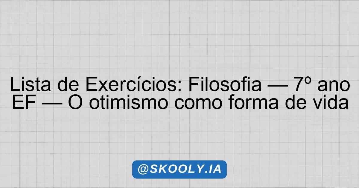 Lista de Exercícios: Filosofia — 7º ano EF — O otimismo como forma de vida