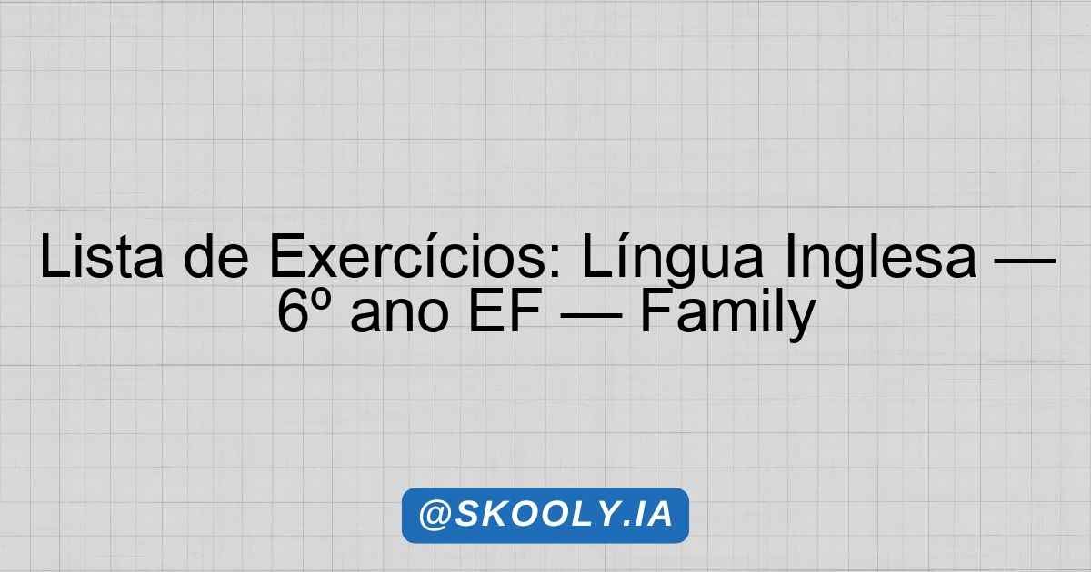 Lista de Exercícios: Língua Inglesa — 6º ano EF — Family