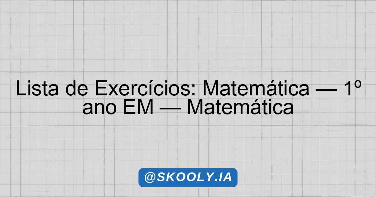 Lista de Exercícios: Matemática — 1º ano EM — Matemática