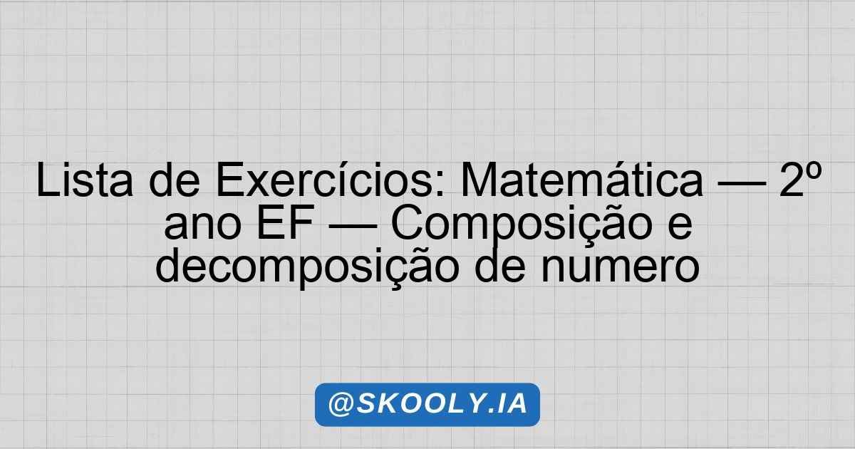 Resolva as questões abaixo sobre composição e decomposição de números.