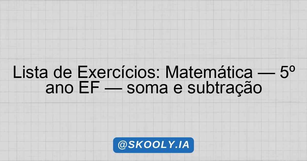 Lista de Exercícios: Matemática — 5º ano EF — soma e subtração