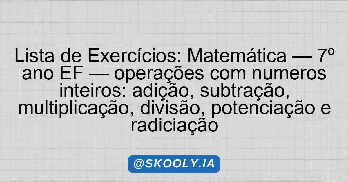 Resolva as questões abaixo, utilizando suas habilidades em operações com números inteiros.