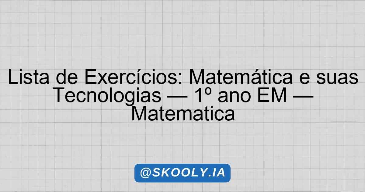 Lista de Exercícios: Matemática e suas Tecnologias — 1º ano EM — Matematica