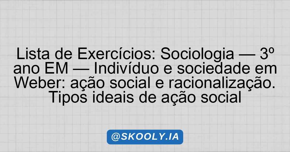 Lista de Exercícios: Sociologia — 3º ano EM — Indivíduo e sociedade em Weber: ação social e racionalização. Tipos ideais de ação social